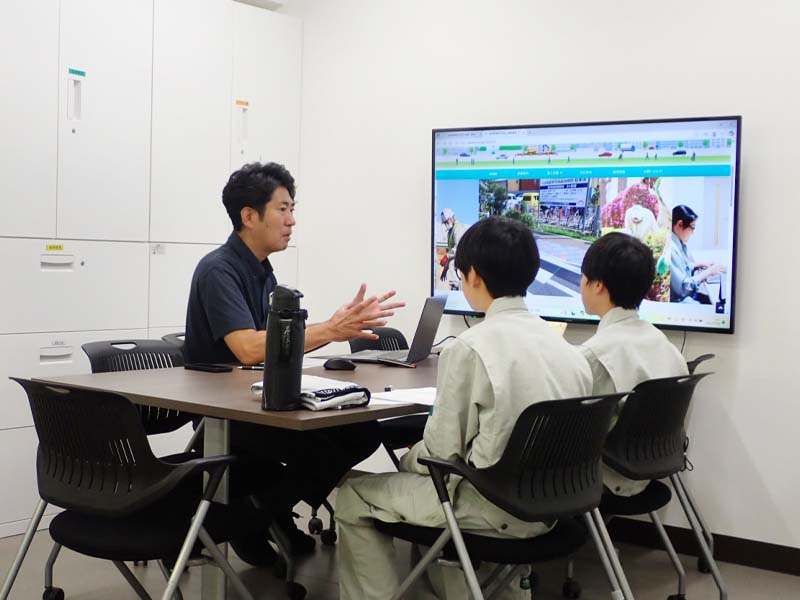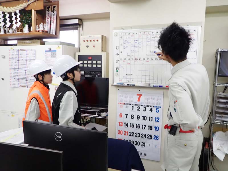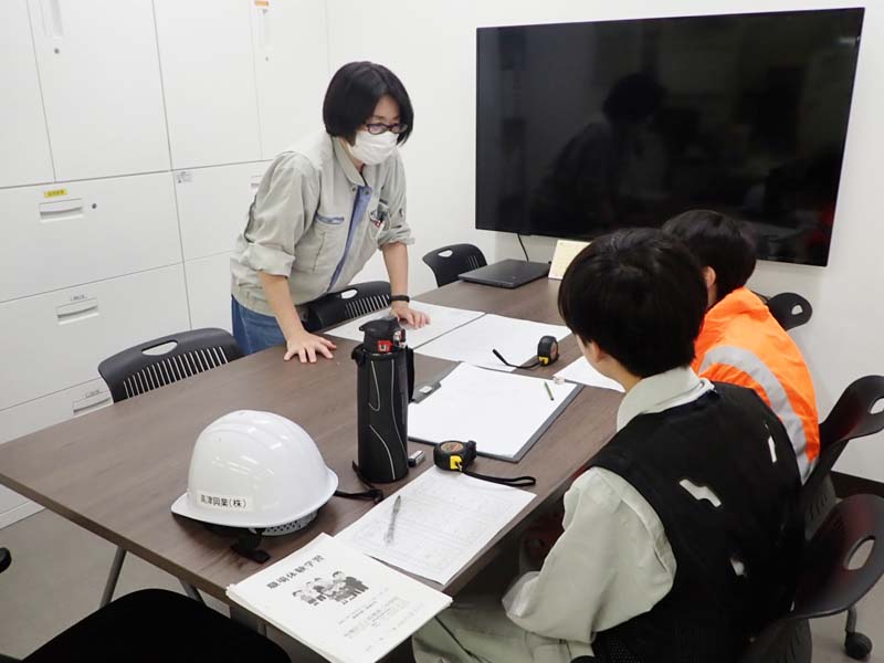 この日近隣で行っている現場の見学に行く前に、作業内容の確認をします。