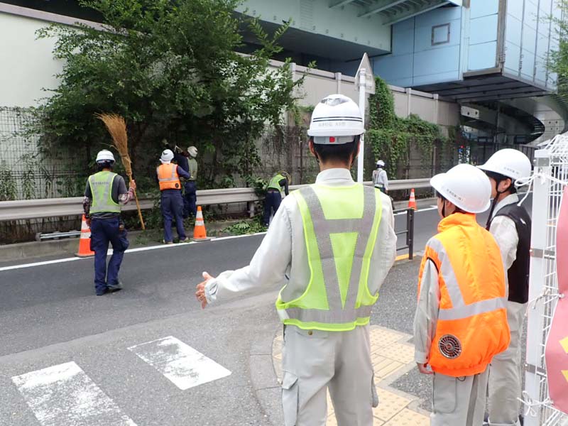 現場監督指示のもと、安全な場所から作業内容について説明が行われます。