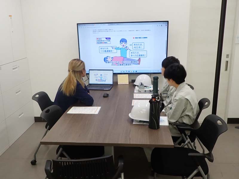 資料とともに救命講習の経験のある社員が説明いたしました。