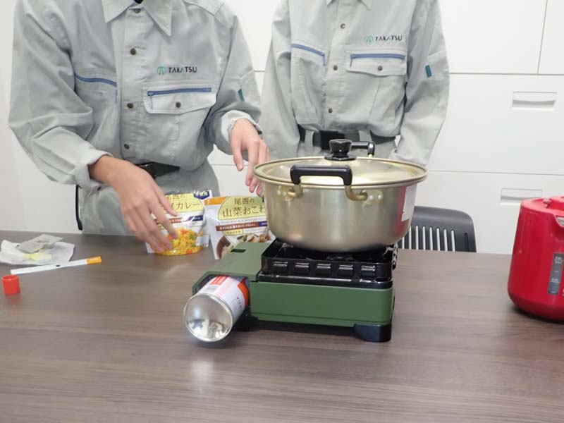 体験では電気が使えなくなった災害時を想定して、ガスコンロを使用したお湯の作り方から非常食の調理方法を行いました。