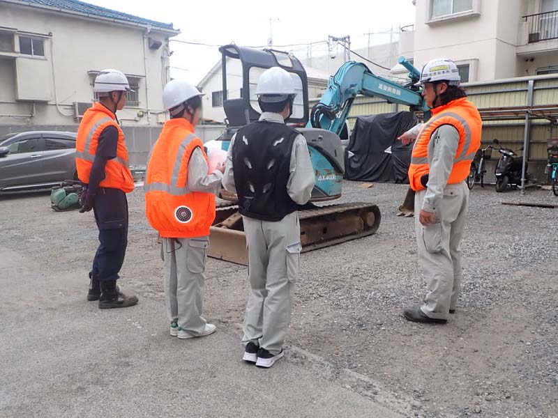 現場監督指示のもと、安全な場所から作業内容について説明が行われます。