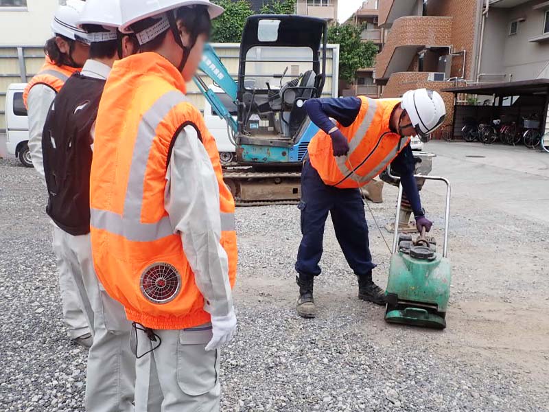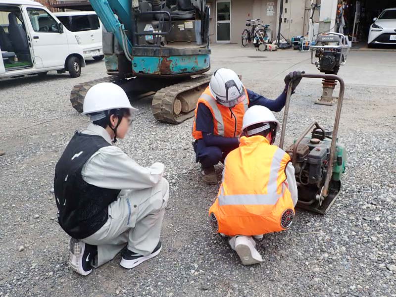 会社敷地内で、工事現場で使用している機械の実演を見ていただきました。